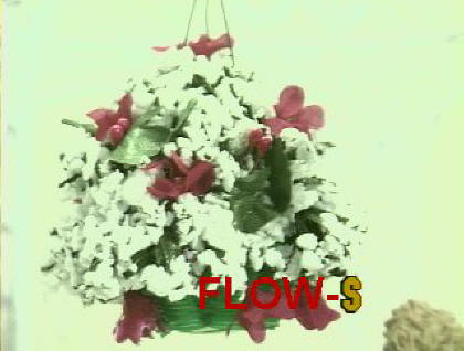 WHITE AND RED FLOWERS IN HANGING BASKET |